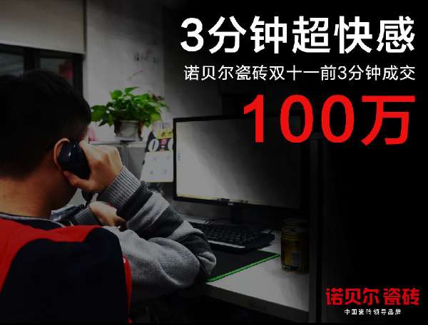 據(jù)悉,今年是諾貝爾瓷磚參加天貓雙十一活動的第二年,適逢企業(yè)戰(zhàn)略調(diào)整元年。為了能取得更好的成績,諾貝爾早早就開始布局,圍繞“全渠道營銷”戰(zhàn)略,開展了一系列宣傳活動,如“網(wǎng)上預(yù)約定金”、“紅約計劃”等,正是這一系列的線上、線下的聯(lián)動宣傳,雙十一狂歡盛宴剛開始3分鐘,諾貝爾瓷磚天貓官方旗艦店交易額已突破100萬;5小時,打破去年諾貝爾自己保持的瓷磚類目成交記錄;早上9點46分交易額更是突破1億元大關(guān),率先進入瓷磚品類億元俱樂部。以實力為低迷的瓷磚行業(yè)注入一針強心劑!