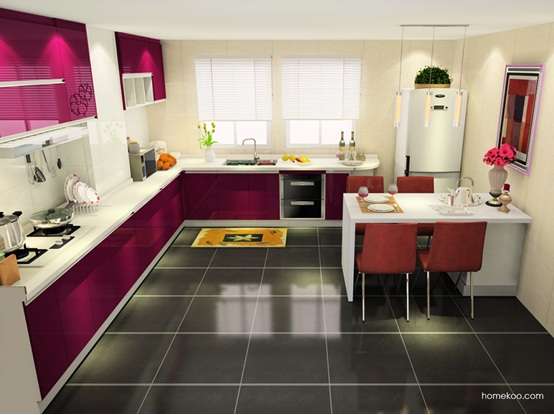 這是尚品宅配紫晶魅影系列的一款L型櫥柜,選用亮度高且耐磨的門板,為使櫥柜門板更具立體感而采用了鏤花工藝應(yīng)用。廚房的功能區(qū)域分布清晰,一字排開,操作順暢,可以便利地流線操作。同時(shí)地柜與吊柜的組合使得廚房物品分類儲(chǔ)存變得容易,空間的利用率高,取放物品也方便。此外還設(shè)置了就餐區(qū),可以很好地利用空間,同時(shí)便于就餐,方便且實(shí)用。