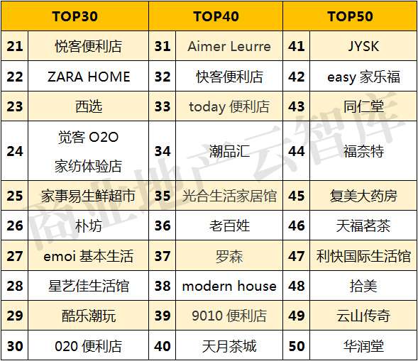 第三季度最受關(guān)注家居生活品牌TOP50榜