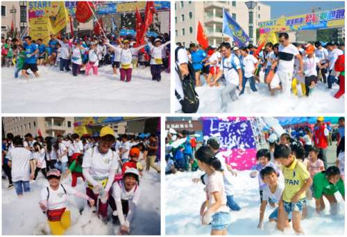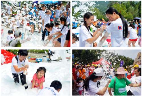 參與者們興奮地往泡泡跑道上狂奔,然后從一大堆泡泡里沖出來(lái),跑道上瞬間充滿了歡聲笑語(yǔ),歡樂(lè)的氣氛把跑步升級(jí)為了一場(chǎng)玩樂(lè)大會(huì)。泡泡由純自然椰油、可降解原料以及可食用色素制作,對(duì)身體無(wú)任何影響。每一個(gè)參加者都穿著白色衣服,沉浸在泡泡的世界中,留下七彩絢麗的歡樂(lè)記憶。