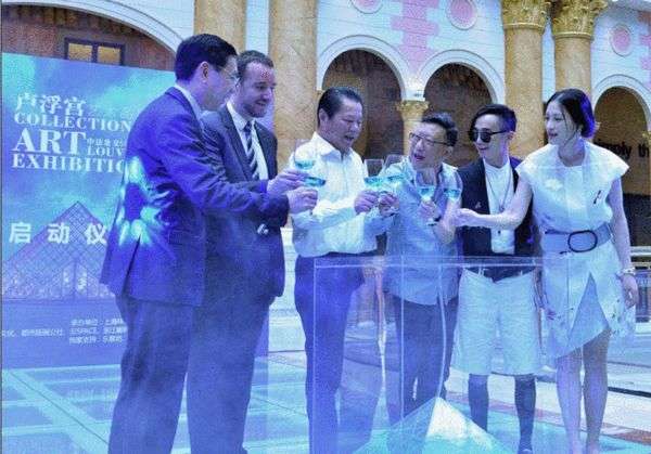 張總與上海環(huán)球港總經(jīng)理葉凱(左1);法國駐上海總領(lǐng)事館副領(lǐng)事ThomasRollet(左2);月星集團董事局主席丁佐宏(左3);盧浮宮項目中國巡展首席代表、中藝文化機構(gòu)CEO李楠(左4);麒麟共創(chuàng)推廣機構(gòu)總監(jiān)孫延秋(右1)共同舉杯祝酒慶賀