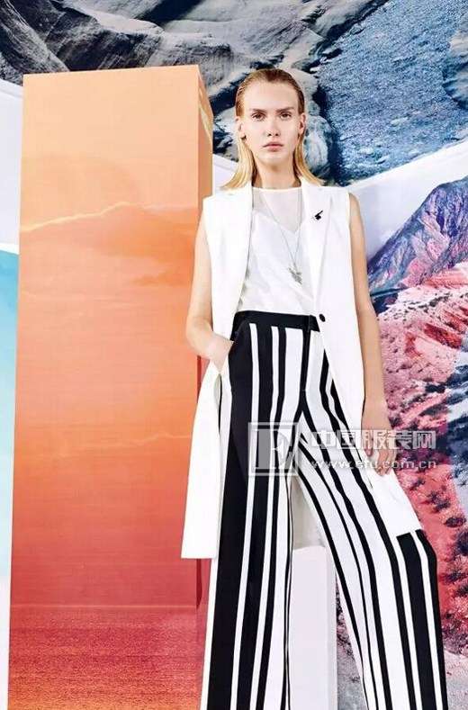 【LOOK6】別致的長馬甲,硬朗而不失細(xì)膩,更顯帥氣中性氣質(zhì),經(jīng)典西裝領(lǐng),過濾繁雜的簡約派。同時大熱的闊腿褲在16年還是會繼續(xù)延續(xù)下去,干凈利落的褲型,豎條紋的花型使得你更加修長。