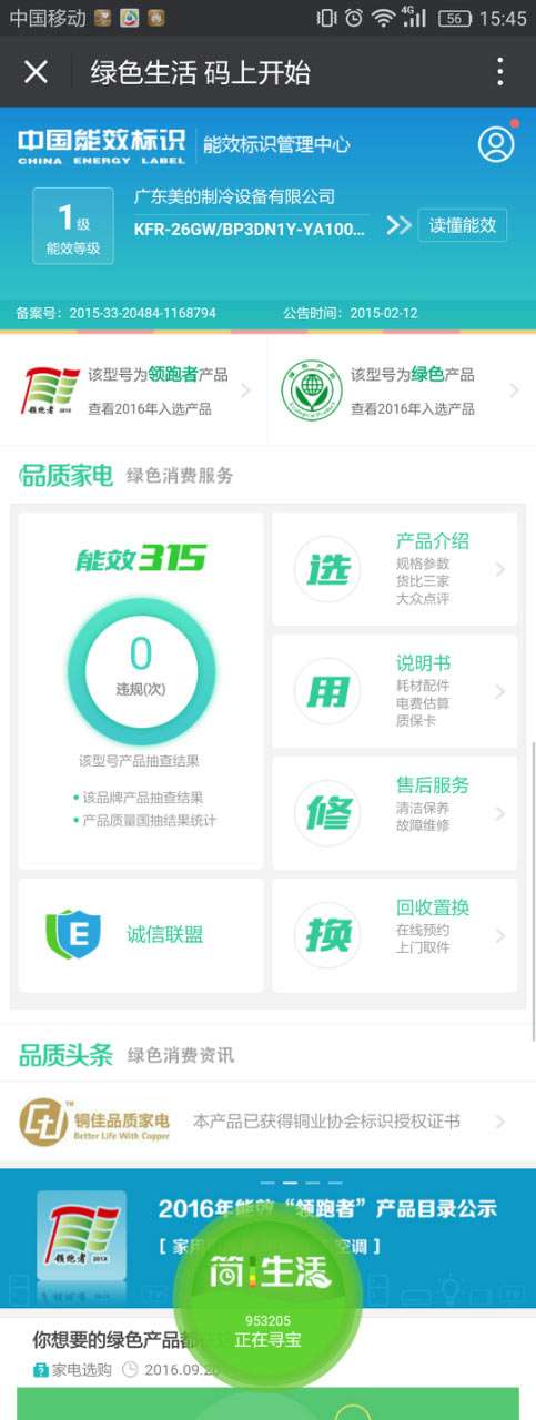 的掃碼平臺上,消費者可以看到“銅佳品質家電”的標識,數十款