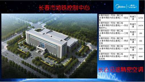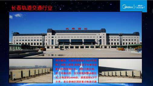 吉林省美的暖通設備銷售有限公司近幾年在當地建立了眾多行業性質的樣板工程,軌道交通行業包括吉林省長春市西客站綜合交通樞紐、長春市火車站北出口、長春市地鐵控制中心、長春市地鐵1號線輔助配套用房;醫療行業包括長春市中心醫院、吉林大學二院、吉大醫院二部、中日聯誼醫院、長春市骨傷醫院、吉林市人民醫院一期、二期、三期、延吉市婦幼保健院、延吉市中醫院、延吉市河南醫院等;金融行業包括:工商銀行、建設銀行、
