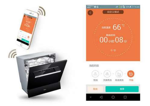 操作非常簡便。跟著我左手右手一個慢動作,三步走就OK。一,先倒掉大的殘渣,如魚骨頭或排骨;二,將餐具擺好在碗籃中,打開水龍頭和電源;三,根據餐具的臟凈程度,選擇好相應的洗滌程序就可以了。美的洗碗機擁有wifi智能系統,用手機就能DIY清洗程序,只要你設置洗滌時間,就可以完事了。