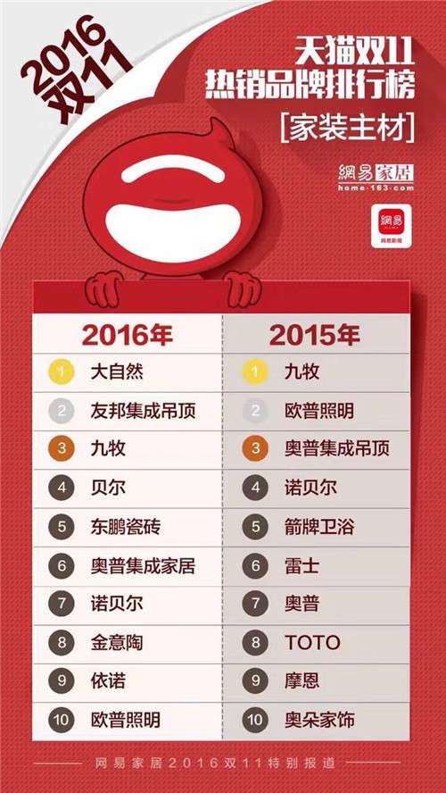 (2016雙十一大自然位居天貓“家裝主材”第一位)