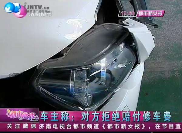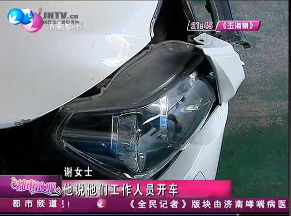 據(jù)報道,記者在愛義行汽車服務(wù)店見到了謝女士的車。汽車右前車頭被撞壞,車牌架也撞落下來,前引擎蓋也受損。