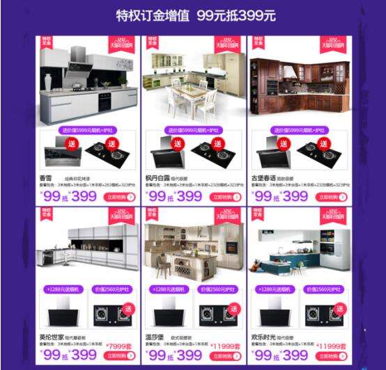 指定櫥柜套餐實(shí)現(xiàn)定金增值,買櫥柜更送好灶