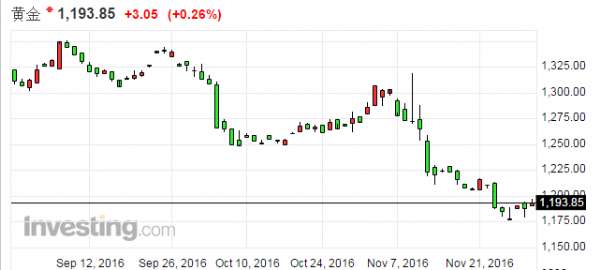 匯豐銀行在周二(11月29日)發(fā)布的報(bào)告中稱,一些重要的美國(guó)經(jīng)濟(jì)數(shù)據(jù)和政治風(fēng)險(xiǎn)對(duì)本周黃金的走勢(shì)極為關(guān)鍵。這些美國(guó)數(shù)據(jù)包括周五的非農(nóng)就業(yè)數(shù)據(jù),周二的消費(fèi)者信心指數(shù)和周四的ISM調(diào)查數(shù)據(jù)。