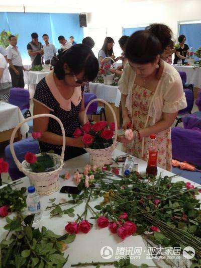 趙曉娟老師在現(xiàn)場進行插花技術(shù)的講解和指導(dǎo)