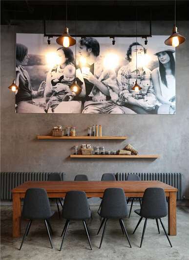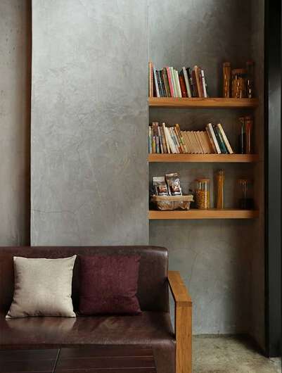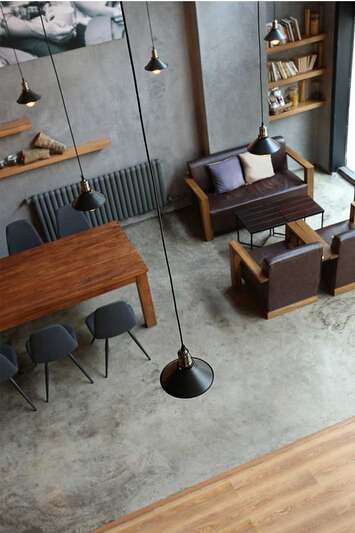 設(shè)計(jì)理念基于非常有限的材料,如鋼結(jié)構(gòu)樓梯、柱子,一樓主要采用了混凝土地面及墻壁,夾層則以木家具,搭配溫暖的燈光,為室內(nèi)營造出舒適的氛圍。