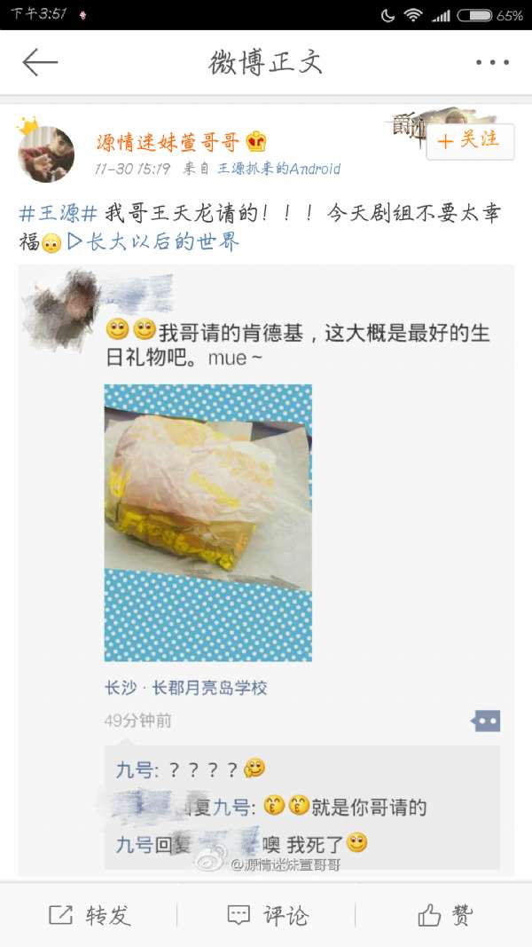 在拍攝行程中,全服最6的天龍哥顯露出暖男的一面,大方請前線迷妹肯德基。辣個幸運的粉絲并發博感謝表示:是最好的生日禮物了。