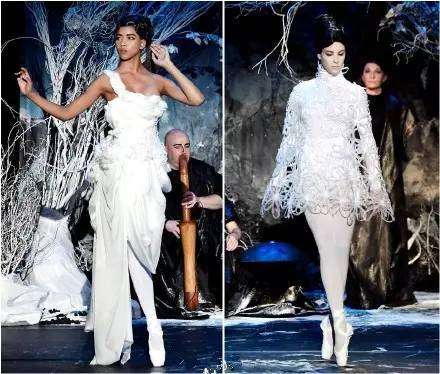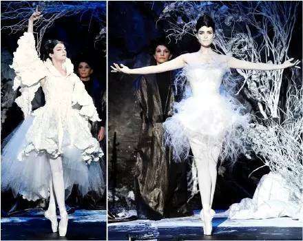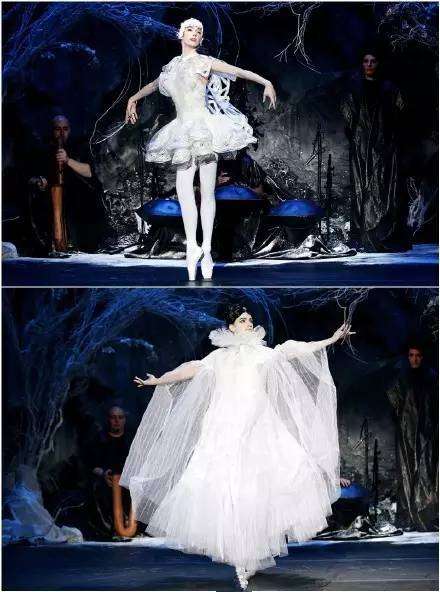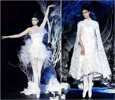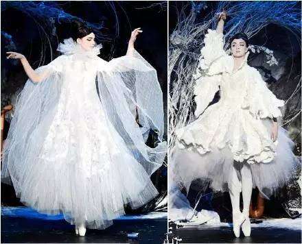 法國設計師Franck Sorbier 的2015秋冬高級定制系列發布請來了完全可以搶走模特飯碗的專業芭蕾舞演員,配合詭異唯美的冰雪天鵝湖主題,通過一出精心編排的芭蕾舞劇將新季高定禮服依次在演員的情緒起伏與翩翩起舞中呈現出生動的發布展示alapa,Mexico