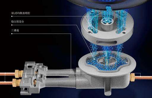其次,方太“極火直噴”燃?xì)庠畲钶d“雙U5均衡直噴腔”,讓內(nèi)圈部分燃?xì)馀c空氣的混合更加高效、出火更加均勻;全新設(shè)計(jì)的“三通道閥體”以獨(dú)立通道、獨(dú)立閥體控制燃燒器核心區(qū),精準(zhǔn)掌控200W的精致火力,實(shí)現(xiàn)分區(qū)燃燒。自上而下,從超大出火孔、增效聚能罩、雙U5均衡直噴腔、穩(wěn)壓預(yù)混倉(cāng)到燃?xì)夤艿娜ǖ溃度肭曳忾]式的設(shè)計(jì)一環(huán)扣一環(huán),“外環(huán)火、中環(huán)火、中心火”的立體火力,配合超負(fù)荷的超寬區(qū)間設(shè)計(jì),實(shí)現(xiàn)了“火域范圍”和“操作精度”的全面提升,而增效的聚能罩幫助阻隔熱量散失,同時(shí)將新鮮空氣與燃燒后熱空氣分流,也幫助提升了效率3%左右。