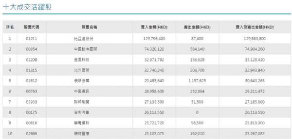 另一方面,深圳方面的南下資金買入金額最大的股票為比亞迪股份。