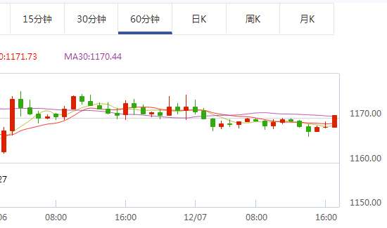 周三金價(jià)延續(xù)弱勢(shì)震蕩局面,周一意大利公投引發(fā)的短暫的避險(xiǎn)情緒,導(dǎo)致金價(jià)沖高至1188附近遇阻快速回落,一度跌創(chuàng)十個(gè)月低點(diǎn)至1157.27后在低位買盤的幫助下回升至1170附近企穩(wěn)。