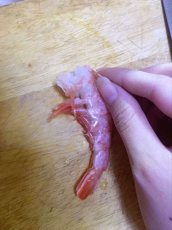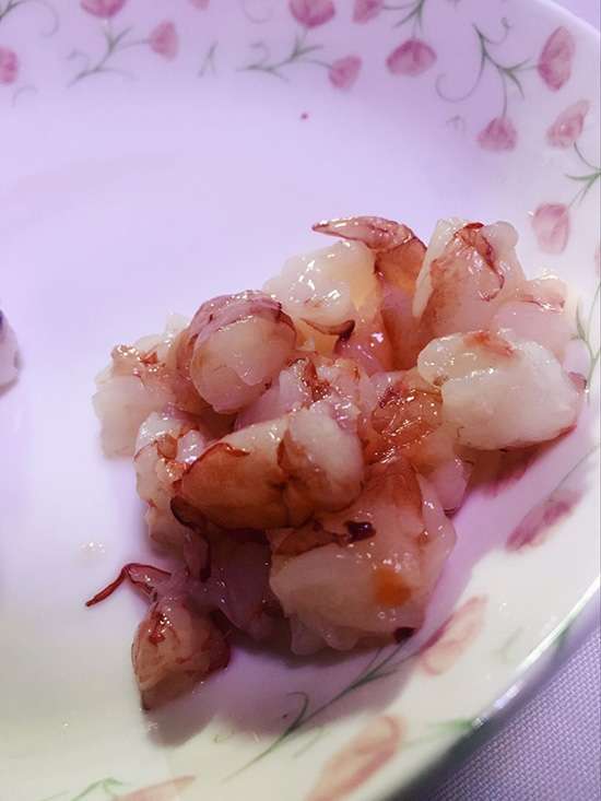 將大蝦去蝦線,切丁