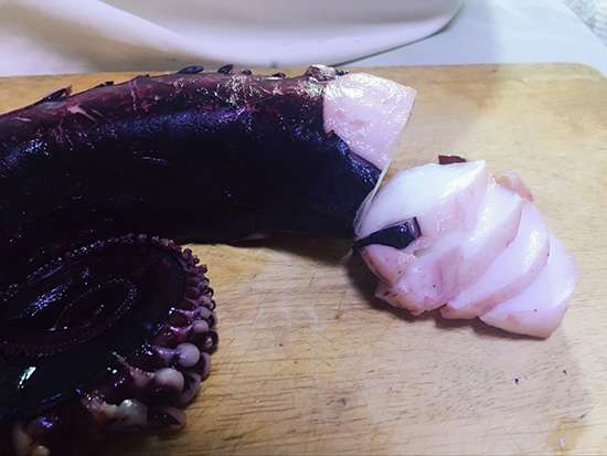 將章魚大腿兒切丁