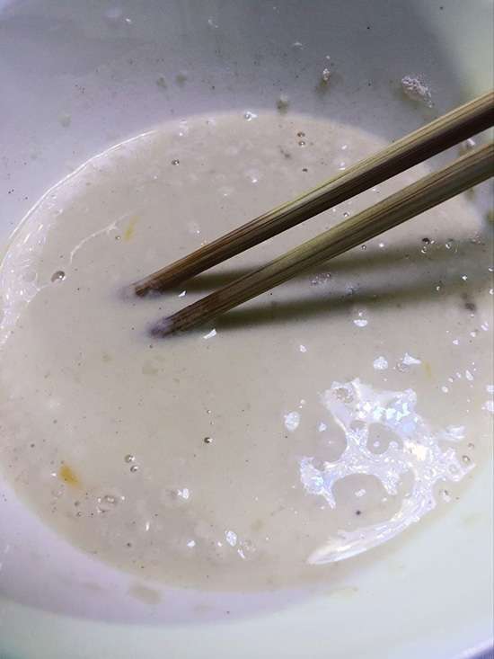 將翻出來的面糊塞入丸子里,時不時用筷子扒拉丸子,