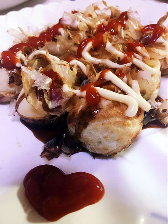 周末逛商場,看到一家花里胡哨的小店鋪,走近一看,是賣一種叫章魚小丸子的小吃。16大洋4個大球兒,買一份嘗嘗還挺有意思的。回家百度查了查,這種大球兒是源自日本大阪地區的著名小吃。對于吃沒什么追求的小編看來,這個東西本質上類似于咱北方的糊塌子——面糊里加入材料,煎熟。但就這么一枚小小的丸子,也充分體現了日本飲食的特點:比如食材多樣性,什么都往里整點兒;再比如使用新鮮的海鮮;還有就是不管好不好吃,擺那兒就讓你有食欲的賣相,不像咱們這么粗魯的直接攤張餅就算了。