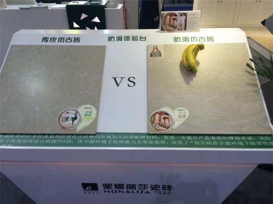 瓷磚花紋可以做到很美,表面效果可以很逼真,但對(duì)于老齡人來說,最重要就是防滑。早在2013年,蒙娜麗莎集團(tuán)就針對(duì)老齡化人群的特殊需求進(jìn)行開發(fā),推出了摩擦系數(shù)高于0.6以上的功能性防滑瓷磚——拉菲經(jīng)典系列防滑仿古磚,集裝飾材料與使用功能于一體的新型陶瓷,滿足老齡化社會(huì)的需求。