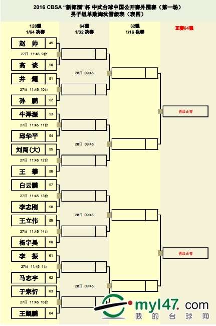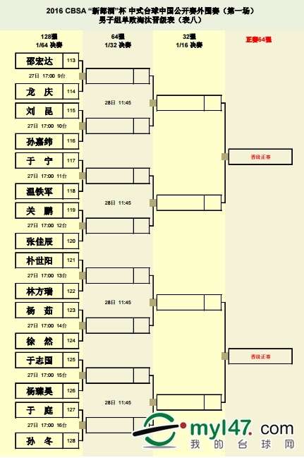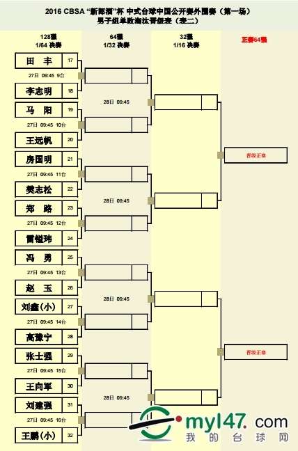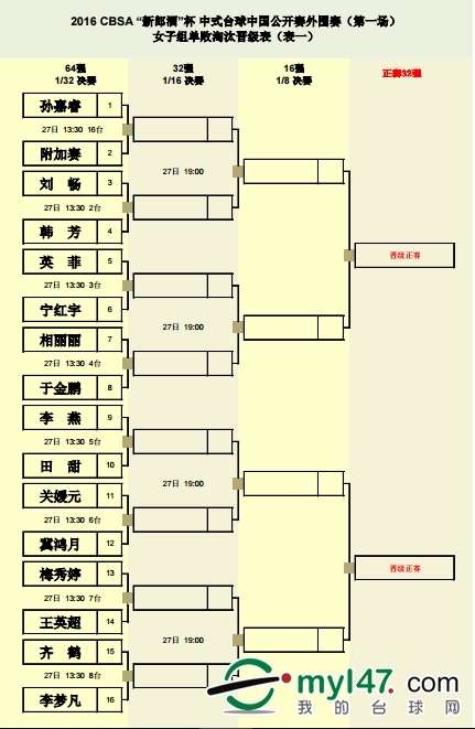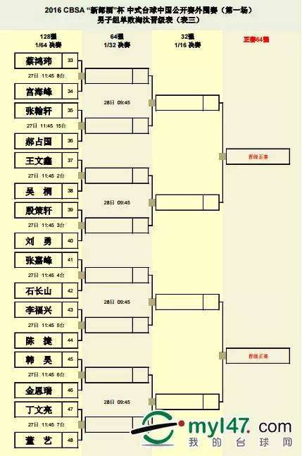 據(jù)悉,本次比賽分為外圍賽和正賽兩個階段。11月27-29日在唐山明星臺球俱樂部舉行外圍賽,有近200名選手參加;11月29日-12月3日將在唐山市體育館舉行正賽。外圍賽采用單敗淘汰賽制,輪流開球,男子比賽13局7勝,女子比賽9局5勝。外圍賽分兩場進行,男、女組每場分別決出16名、8名選手(共32名、16名)進入正賽。正賽也將采用單敗淘汰賽制,CBSA排名男子前24名、女子前8名選手將分別設(shè)為種子選手。