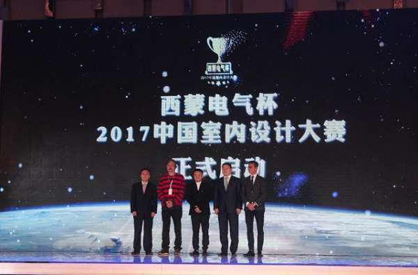 活動現(xiàn)場,全國工商聯(lián)家具裝飾業(yè)商會執(zhí)行會長張傳喜先生,廬山藝術(shù)特訓營創(chuàng)始人、聯(lián)合國生態(tài)生命科學院士余靜贛先生,中華設(shè)計委主席、高迪建筑工程設(shè)計有限公司創(chuàng)史人史南橋先生,香港方振華設(shè)計有限公司、PFD+董事長方振華先生以及西蒙電氣(中國)有限公司夏軍先生共同上臺觸動大屏,宣布了“西蒙電氣杯”2017室內(nèi)設(shè)計大賽正式啟動。