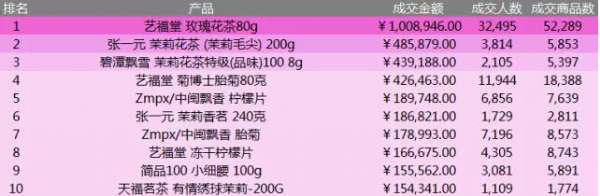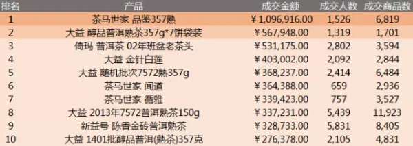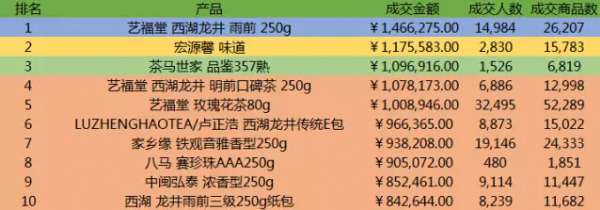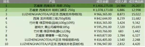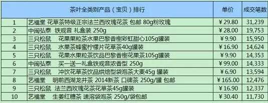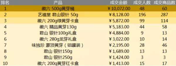 ?單品銷售排行:傳統(tǒng)品牌茶企電商影響力日漸擴大
