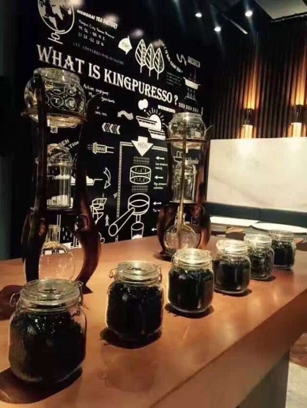 在上海的大益茶庭全球研發(fā)中心,由大益勐海茶廠資深茶專家、上海年輕的茶咖師、以及多名飲料及食品研發(fā)經(jīng)驗的產(chǎn)品經(jīng)理共同組成的黃金研發(fā)團隊,從數(shù)十款大益普洱原料中甄選,從更早工業(yè)化制成標準的咖啡制備程序中尋找靈感,利用半自動的可變壓萃取機,配合專門研制的茶手柄,現(xiàn)場萃取出普洱茶的精華,濃縮成一杯滋味濃郁的普洱茶基濃縮,以其特有的濃釅,適和與蒸奶、奶油等融合,通過上百次千次的調(diào)制與反復的口感測試,成為具有黃金比例配方的現(xiàn)代茶飲。研發(fā)團隊將這款品質恒定、口感獨特的產(chǎn)品命名為“金普芮(kingpuresso)”。