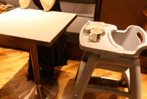 專門為兒童預備的環(huán)保材質的餐具、進口的寶寶椅子。