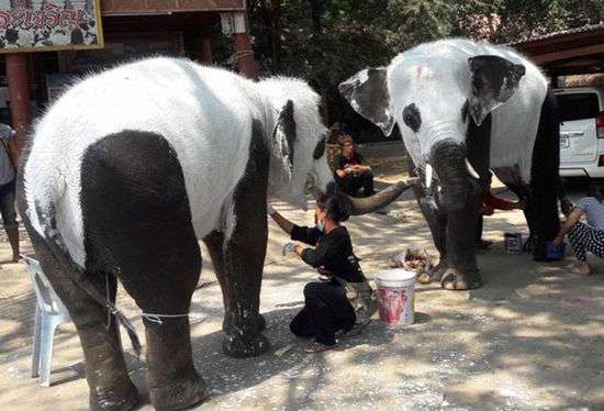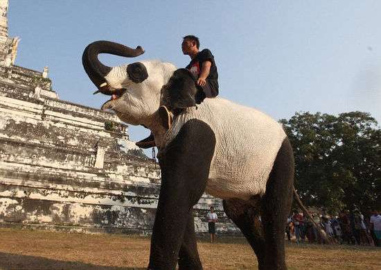 (原標題:泰國象園辦“熊貓展” 大象化妝成大熊貓(高清組圖))