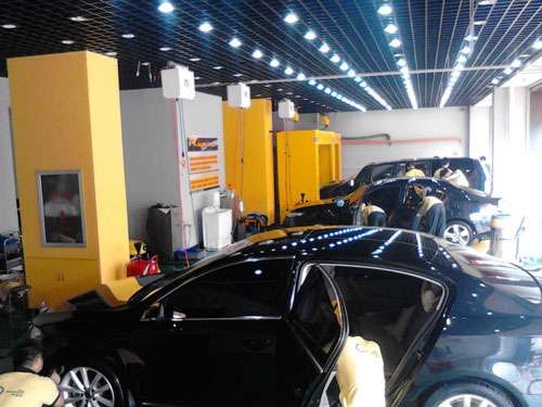 風(fēng)格,功能齊全的操作車間,為顧客營造了更親近、舒適的服務(wù)氛圍?吹教馗HR旗艦店紅紅火火的經(jīng)營狀況,加盟商倍受鼓舞。為了使車主盡快對特福萊有更加深入的了解,店長和
