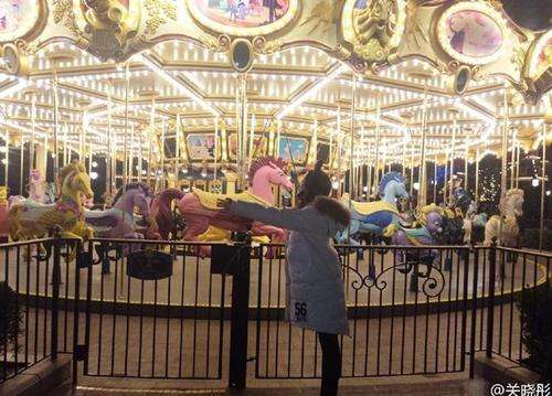 關曉彤在旋轉木馬前擺pose