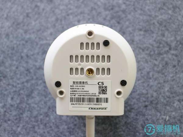 所有的功能開孔都位于智能攝像機(jī)平臺底座的后側(cè),分別有RJ45 10M/100M自適應(yīng)以太網(wǎng)口、標(biāo)準(zhǔn)TF卡卡槽、電源插孔和RESET復(fù)位鍵。在wifi網(wǎng)絡(luò)復(fù)雜的環(huán)境中,以太網(wǎng)口插入網(wǎng)線可以保證智能攝像機(jī)的穩(wěn)定工作,個(gè)人接的這種設(shè)計(jì)非常有必要。云視通智能攝像機(jī)C5最大支持64G存儲拓展,可以保障半個(gè)月左右的視頻存儲,基本可以滿足95%以上的用戶群體需求;長按RESET鍵可以完成機(jī)器出廠設(shè)置。云臺的右上角的小孔是內(nèi)置MIC,功能主要用于雙向語音通話和遠(yuǎn)距離拾音,這顆MIC可以實(shí)現(xiàn)6米遠(yuǎn)距離拾音,只要合理布局?jǐn)z像機(jī)的擺放位置,最終可以實(shí)現(xiàn)全房間的聲音監(jiān)控。