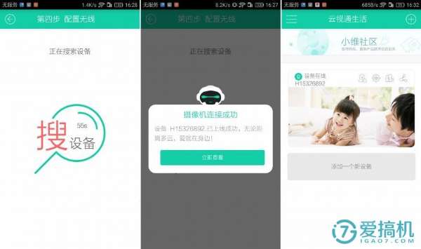 收到聲波后點(diǎn)擊下一步,等待手機(jī)搜集設(shè)備,通常10s左右即可完成綁定鏈接,截止到此完成攝像機(jī)和手機(jī)綁定,接下來你就可以盡情享受遠(yuǎn)程觀看、對講、抓拍等功能了。