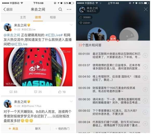 回到直播內容本身,這是一次頗為有趣的直播秀,付費提出的問題五花八門,王高飛也逐一做了解答。例如“微博財報里有個1100萬美元的投資減持,有點好奇是怎么回事”;“Q3財報中最滿意的數據是什么”;“你怎么看待你是微博最大牌客服和PM這個問題”等等。