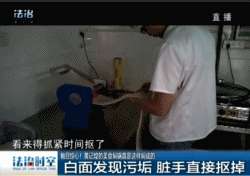 深圳電視臺記者臥底一家黃記煌餐館,發(fā)現(xiàn):后廚成“蒼蠅樂園”,廚工菜刀打蒼蠅;大廚不洗手,捏完蒼蠅再炸餅,發(fā)霉大米洗洗下鍋,“不發(fā)霉洗來干嘛”,青椒、魚等食材掉地上不用洗,淋上調料就上桌。