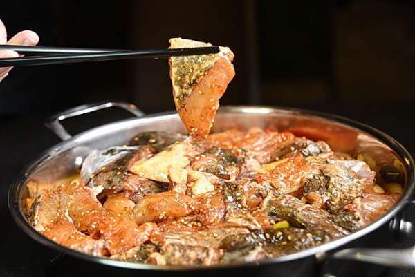 〈石斑魚〉燜鍋是將一整尾石斑魚,連魚頭帶魚肉放入鍋內(nèi)燜制。(圖/姚舜攝)