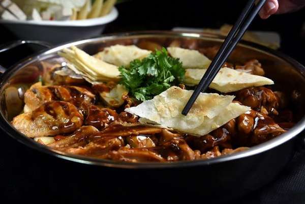 吃燜鍋除了可以配白飯,也可以點(diǎn)一份烙餅沾著鍋內(nèi)醬汁吃食。(圖/姚舜攝)
