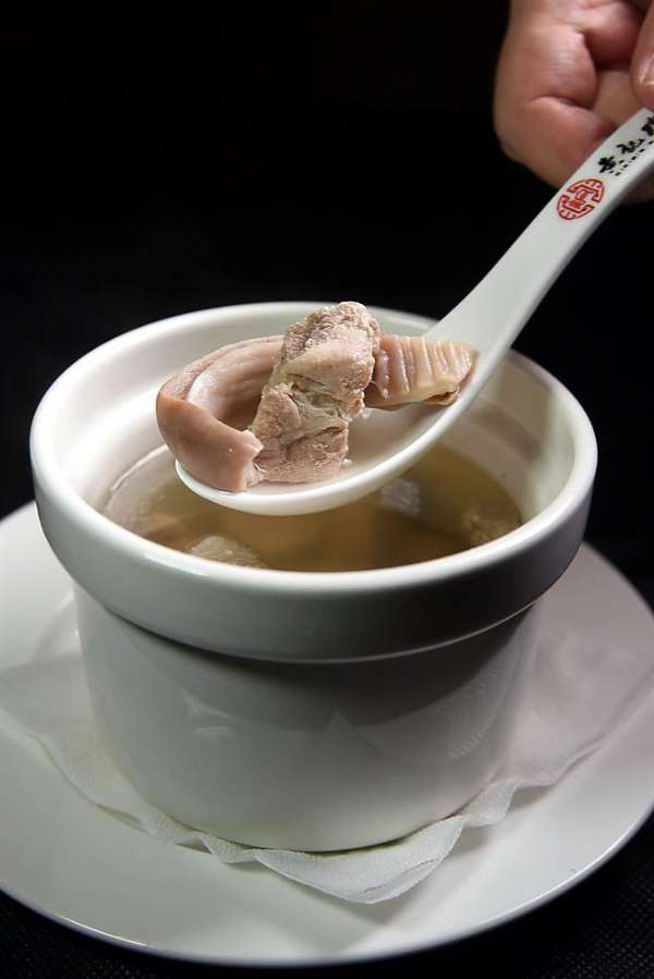 現(xiàn)點(diǎn)現(xiàn)燉的〈豬肚排骨湯〉,湯色清淺、湯味鮮濃,每盅90元。(圖/姚舜攝)