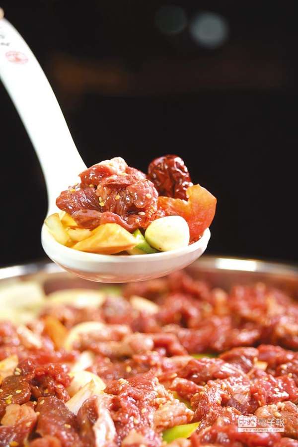 〈黃記煌〉的牛肉、雞肉或海鮮等所有的燜鍋,都在鍋底放了10種蔬菜,一個(gè)鍋內(nèi)有葷有素,標(biāo)榜營養(yǎng)均衡。圖/姚舜