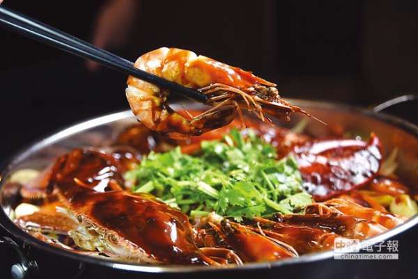 〈豪華拼盤〉燜鍋內(nèi)的食材很豐富,內(nèi)有梭子蟹、斑節(jié)蝦、半尾波士頓龍蝦,以及厚切安格斯牛小排肉片。圖/姚舜