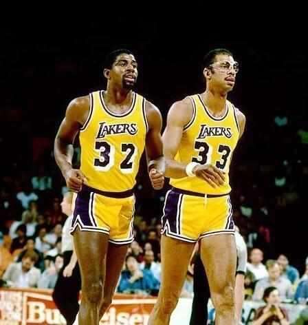 “魔術(shù)師”埃爾文·約翰遜和“天勾”賈巴爾組合,上世紀(jì)80年代湖人統(tǒng)治了NBA長達(dá)10年,在這漫長的時(shí)間里球隊(duì)8次闖進(jìn)總決賽,5次獲得總冠軍,可以說那個(gè)時(shí)期的湖人是其他球隊(duì)無法忽視的存在, 約翰遜是NBA史上最出色的控衛(wèi),賈巴爾則是史上最出色的中鋒之一,二人組在那個(gè)時(shí)期極具統(tǒng)治力,直到1990年對陣公牛,湖人依舊是聯(lián)盟中出色的球隊(duì),不過那個(gè)時(shí)期的湖人巔峰時(shí)期已經(jīng)過了,80年代的湖人可能是最能與公牛王朝時(shí)期的喬丹和皮蓬抗衡的球隊(duì)。