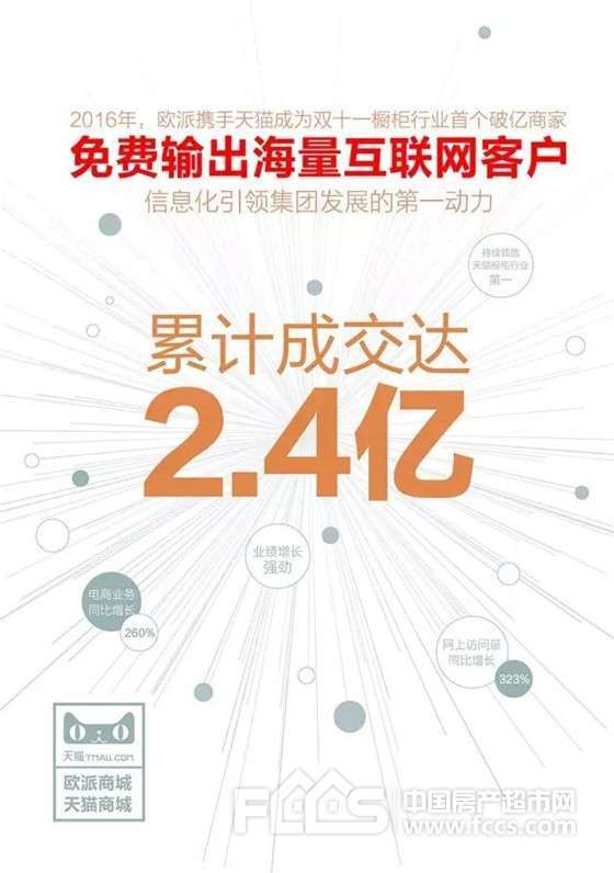 得口碑者得天下!完善的渠道布局、卓越的產(chǎn)品品質、優(yōu)質的售后服務讓歐派櫥柜得到廣大用戶的口碑相傳,更推動業(yè)績不斷攀升!今年雙 十一,歐派櫥柜攜手天貓首 次打造全國線上線下萬人千店雙向聯(lián)動,總銷售額突破2.4億元,位列天貓櫥柜行業(yè)第一,在銷量、營業(yè)額及利潤層面均摘得市場桂冠!