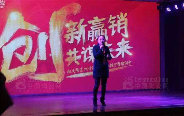 緊接著,歐美陶瓷四川分公司經銷商代表上臺熱情地分享了這年來的經營心得、經歷分享,她從從店面管理、團隊打造、展廳布置、銷售技巧等方面生動展示了如何打造強勢終端運營體系,他的演講給現(xiàn)場的所有家人們非常大的啟發(fā)和激勵。