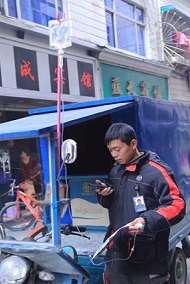 快遞小哥打著吊瓶送快遞