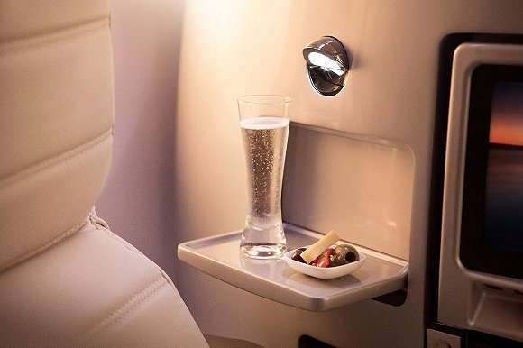 放好行李落座后,空乘小姐會給你端上專門為商務艙旅客提供的 Welcome Drink,包括新西蘭本地產(chǎn)的氣泡酒和法國香檳。一場完美的飛行之旅,就此開始。