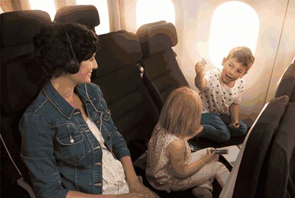 晚飯過后,爸媽們可以叫空乘把聯(lián)排的 3 個座椅變型成“空中沙發(fā)”(需提前預訂),給孩子打造一個完美的“空中游樂場”。
