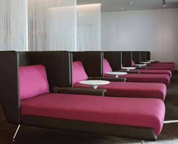 這個五星航空貴賓室的面積超過了 2000 平方米,有 24 種不同風格的座椅由著你選。在十足的簡約風格中又透著些夜店的神秘魅惑范兒。商務區(qū) Wi-Fi 全覆蓋,配有打印設(shè)備以及超過 300 個的電源和 USB 插口。