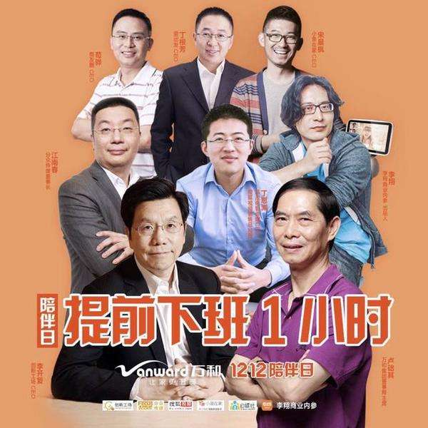 也許正是身同感受,萬和這條刷爆朋友圈的創(chuàng)意短片《陪伴的時差》,讓全民網(wǎng)友如此深刻并引發(fā)熱議。值得慶幸的是,片中主人公最終因為每天多了一個小時在家人身上,打破了兩個世界的壁障,為陪伴消除了時差。看似小小努力,卻從根本上改善了與家人相處的狀態(tài)。除了視頻刷爆朋友圈,萬和更聯(lián)合創(chuàng)新工場CEO李開復(fù)、分眾傳媒董事長江南春、南友圈CEO茍驊、晶茂電影傳媒CEO丁思淵、小魚在家CEO宋晨楓、李翔商業(yè)內(nèi)參出品人李翔、要出發(fā)CEO丁根芳等一眾大咖響應(yīng)“陪伴日提前1小時下班”的號召。